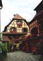 1998 per quello che è stato il mio primo vero approccio di sempre ai vini di questa terra, e che mi ha senza dubbio sorpreso. La sorpresa altamente positiva è venuta dall’assaggio del gewurz(in Alsazia questo è il nome amichevole che danno al vino), ottimo nella versione Réserve 1998, con grande bilanciamento del residuo zuccherino e della spinta acida del frutto, ancor giovane e, soprattutto, eccellente e dal grande impatto gustativo e olfattivo nella versione 1997 Vendange Tardive,che senza troppi fronzoli ha fatto conoscere alle mie papille stili fino ad allora a me estranei e forse anche per questo ancor più sorprendenti. La sorpresa negativa è invece arrivata dall’assaggio del riesling, che io attendevo con trepidazione, anche perché da molti considerato il vero vin noblealsaziano, quello che esprime più di ogni altro l’essenza del vino bianco: delicatezza, souplesse,fragranza lieve e molto ben sfumata, elegantissimo portamento. Ebbene, sia la versione Rèserve che la versione Grand Cru non mi hanno affatto colpito, stante la pochezza di contenuto aromatico e la beva elegante sì, ma abbastanza anonima. Mai giudizio però fu così avventato: assaggerò ancora riesling nel corso del mio viaggio alsaziano e come vedrete il giudizio starà su tutt’altra linea. A pochi passi dal domaineveniamo attirati dall’ambiente, tutto aldifuori che smaccatamente ammiccante,offerto allo sguardo da una vera e propria fattoria vecchio stile e dal nome del vignaiolo che vi sta scritto di fronte: Jean Michel Welty, e noi lì ci dirigiamo. Ci accoglie una anziana signora che scopriamo essere la madre del vignaiolo ma anche colei che ha mandato avanti la cantina fino all’avvento a tempo pieno del figlio e quindi, dall’alto delle sue ottanta primavere, altamente consapevole sul da farsi. La proposta, su mia indicazione, ha vertito su un tokay-pinot gris e poi su una piccola verticale di gewurzvinificati con tecniche diverse, e la degustazione è stata condita dalle sagaci e sensate puntualizzazioni della signora Welty, sorprendente esempio di saggezza contadina fatta persona, piena di giusto orgoglio e di simpatia innate. Scopriamo che la piccola proprietà non contempla alcuna vigna all’interno di un Grand Cru eppure sono encomiabili per fattura e stoffa sia il Tokay-Pinot Gris 1998 che il Gewurztraminer1997. Ottima bocca e complessità aromatica ancor più in evidenza nel Gewurztraminer 1996 Cuvée Aurèlie e poi cambio di registro con gli assaggi in sequenza del Gewurztraminer Vendange Tardive 1994 e del Gewurztraminer Selection des Grains Nobles 1989, dei quali conservo ricordi di grande avvolgenza e complessità nonché di estrema caratterizzazione, quasi mai riscontrata prima nel piccolo delle mie esperienze di degustazione, in vini dolci o da meditazione, se non in rari e blasonati esempi. In particolare i colori, l’opulenza, la polposità e la gamma aromatica persistentissima che sprigiona dal bicchiere del Gewurz1989 sono impressionanti. Da un piccolo vigneronalsaziano, senza Grand Cru a dar bella mostra di sé, è nata una perla tra altre piccole perle, per una produzione di alto livello qualitativo e che sconta dei prezzi in cantina che, se rapportati al valore intrinseco, danno di che pensare alla produzione italiana di vini bianchi di qualità. E’ stato lì, nella accogliente