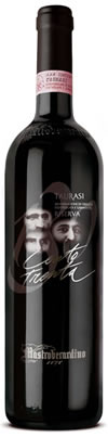 Il Taurasi è senza dubbio l'espressione più virile, austera, intensa, profonda, ricercata e per certi versi poetica di aglianico, unica DOCG "rossa" del territorio, disciplinato da una procedura di vinificazione ed invecchiamento tesa a rendere il massimo in termini di consistenza, longevità, struttura ed eleganza. Insomma il vino più importante, che l'azienda Mastroberardino ha nel tempo proposto con la continuità e la dedizione che il territorio estremamente vocato meritava ampiamente. Questa speciale edizione a tiratura rigorosamente limitata, riserva di un'annata (1999) decisamente sopra le righe, si presenta con una veste a dir poco toccante: l'etichetta è infatti realizzata con una tecnica estremamente raffinata e riproduce l'effigie dei tre esponenti della famiglia che hanno scritto nei fatti la storia di questa azienda. E sarebbe riduttivo non riconoscere a questi personaggi una valenza da protagonisti dell'enologia campana: Angelo, Michele e Antonio Mastroberardino, tre figure di rilievo che hanno contribuito a ricreare il movimento vitivinicolo in un momento difficile, a promuovere e diffondere coraggiosamente il vino campano nel mondo, e a preservare le varietà autoctone nel complicato periodo della ricostruzione di una ricchezza viticola che il Paese aveva perduto. Artefici quindi anche dello sviluppo economico e sociale dell'enologia di questa regione e dell'Italia intera, a questi uomini della Campania viene dedicato un vino commemorativo che resterà unico e che diverrà probabilmente un cosiddetto Collectible. Chissà se Piero Mastroberardino, erede di una storia così