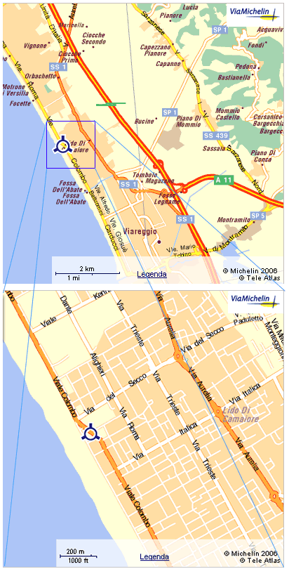 vostra destra. Uscendo invece alla A12 al casello Versilia si