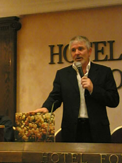 Apprezziamo quindi "l'approccio positivo alla vita" di Marilisa Allegrini, una fisioterapista che si è lasciata "incantare" ed oggi, scomparso papà Giovanni ed il fratello Walter, è donna di vigna e di marketing; donna della Valpolicella con un progetto a Bolgheri. "Ascoltiamo" anche Gian Matteo Baldi che racconta del suo incontro con la Bertani e ci narra di come i fratelli Bertani, fuggiti in Borgona ai tempi dei moti carbonari, vissero ed assimilarono il grande cambiamento enologico francese. Oggi quest'azienda è l'unica ad avere in listino 25 annate di amarone (io stesso ho potuto degustare annate come 1987, 1973 e 1968). Conosciamo poi la sconfinata realtà Zonin, con i suoi 1800 ettari vitati nel territorio nazionale e ben 11 doc a listino, per una produzione di 23 milioni di bottiglie commercializzate in 76 paesi nel mondo; ma anche questo colosso è fatto di uomini, di fratelli e anche loro, raccontandosi, parlano di "noialtri". Un libro importante, consistente e piacevole. Un incontro con una terra e infiniti paesaggi, con due anime e decine di volti, sguardi, dettagli, chiaroscuri e colori. Un libro da leggere e da divorare con gli occhi, per la poetica della narrativa, la pertinenza degli approfondimenti, l'intensità dei racconti e non di meno per la bellezza delle immagini. La conferenza di presentazione si conclude con una domanda che il presidente del Consorzio di Tutela Vini Soave rivolge all'autore: "Perché hai scritto - non mi sento uno di noi altri?" "Ora non lo so, il tempo saprà dire se potrò sentirmi uno di noialtri." 5 marzo 2008