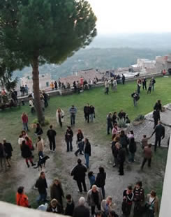 Testo e fotografie di Fabio Ciarla A Palombara Sabina la quarta edizione della manifestazione organizzata da Idee&Valori Non si può dire che gli organizzatori de 'Il Giorno di Bacco' a Palombara Sabina, alcune decine di chilometri dalla Capitale, si cullino sugli allori. La manifestazione cresce e anche quest'anno, domenica 19 novembre, ha dimostrato di essere uno degli appuntamenti enogolosi più interessanti della zona. Ad organizzare la manifestazione è l'associazione Idee&Valori del presidente Fabio Troiani con il patrocinio della Regione Lazio e del Comune ospitante mentre apporti fondamentali sono arrivati da Vigne del Lazio e Slow Food che hanno messo in campo il meglio delle loro selezioni. L'associazione, che raccoglie una trentina tra le migliori aziende vitinicole della regione, era presente con un banco d'assaggio completo, erano in degustazione cioè tutti i vini selezionati dalla commissione esterna delle trenta aziende consociate. Slow Food da parte sua al primo piano del castello, nella sala Ottaviani, ha allestito una serie di stand con degustazione di formaggi, salumi, olio e dolci, mentre, nella Sala delle Capriate, Base Natura ha organizzato i laboratori di degustazione "Assaporando 2006". Splendida la 'location' de 'Il Giorno di Bacco', il Castello Savelli infatti ha offerto ai visitatori angoli affascinanti come le segrete dei piani interrati ma soprattutto la splendida vista sulle colline verso Roma dal prato della terrazza, sulla quale nella giornata sono stati molti gli enodegustatori che si sono sdraiati a godersi il sole e l'aria dolce di una domenica d'autunno fino a un tramonto meraviglioso. Momenti che meritano di essere visti più che raccontati.