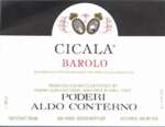 BAROLO 1998 - GIANFRANCO ALESSANDRIA Il granato è fulgido e pieno, senza unghie di sorta. Il suo naso sfumato, sussurrato, accennato su avviluppi ampi e dilatati di autunno e bacche. In bocca ha passo sabbioso e sensibile diffusione tannica, senza morsi o ferite , giocando le sorti sui registri di una timida eleganza. E' il vino che più ha sofferto il confronto ma, come ebbi a dire al momento del mio primo assaggio, datato settembre 2002, è una buona base. Veramente. Di sincera dignità. Certo il peso, e la caratura, del San Giovanni di Gianfranco - ahinoi assente - mi sono apparsi - ed ancor mi appaiono - un'altra cosa. Barolo Vigna Cicala 1998 - Poderi Aldo Conterno