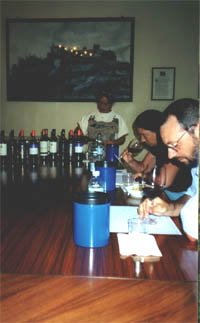 meglio passiamo alla sala di degustazione. Intorno a un grande tavolo