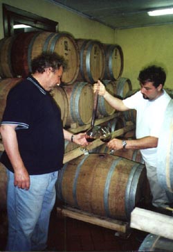 Le due chicche con cui chiudiamo il conto derivano da vitigni locali. Leggiadra, soave e soprattutto profumata ci appare la Massaretta 1999 dove la bocca suadente e composta, il corpo medio quasi esile, la delicata essenza floreale di viola mammola, il rosso non troppo carico, ne fanno un vino di grande bevibilità, che non cerca e non vuole effetti speciali o iper-concentrazioni, ma semplicemente essere sorseggiato con il sorriso tra le labbra, magari a temperatura non proprio calda. Più particolare e caratteriale risulta senz'altro il Vermentino Nero 2000 il quale, spillato dalla botte, offre colore sentito ed olfazione intensa, intrisa di rimandi vegetali, cuoiosi, animali, forse non finissimi né ben amalgamati ancora ma che, insieme alla saporita bocca, contribuiscono ad un bicchiere di insospettabile presenza.