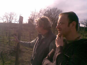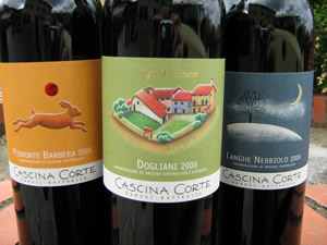 Camminiamo tra i filari; le viti, sgorganti linfa dalla recente potatura, sprofondano le proprie radici su umori di terra tufacea e calcarea non dissimile dalle pendenze della vicina Monforte; tra le vigne piante di favino, trifoglio e malva a portare nutrimento ed equilibrio, una volta interrate, alle viti soprastanti. Per i proprietari, Cascina Corte rappresenta la svolta di una vita, il realizzarsi di un sogno. La coltivazione della vite verrà integrata dalla produzione di grano e pane biologico, oltre a una struttura ricettiva immersa in uno splendido paesaggio naturale. "Abbiamo scelto Dogliani -dice Alessandro- perché qua è ancora possibile parlare di biodiversità. Insieme alla vigna infatti, coesistono alberi, grano, e tanti animali, fattori ideali per una qualsiasi attività agricola". Prima di entrare in cantina volgiamo lo sguardo intorno: uno scenario meraviglioso circonda Cascina Corte, oltre i vigneti, da una parte le Alpi dall'altra, in lontananza, Monforte. "Il massimo rispetto della natura, la fortuna di possedere vigne molto vecchie -dice Alessandro- ci porta a ricercare vini naturali, traduzione speculare del territorio di provenienza". Per i primi anni grazie all'aiuto di Beppe Caviola, ancora oggi enologo dell'azienda, i vini sono stati prodotti senza una vera e propria struttura di proprietà, dalla scorsa vendemmia invece tutto la massa è in affinamento nell'embrione della nuova cantina. Degustazioni