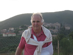 Nelle foto: Piero Palmucci con sullo sfondo Castelnuovo dell'Abate;