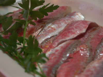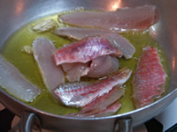 Nel frattempo sfilettate, o fatevi sfilettare, le triglie. Mettete poi a bollire l'acqua e preparete il condimento arrosolando due spicchi d'aglio in olio extravergine di oliva e aggiungendo le triglie. Sfumate con vino bianco, aggiungete un poco di peperoncino, e in pochi minuti il vostro sugo sarà pronto.