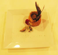 il sentore animale della rete di maiale e il forte impatto del rosmarino che guarnisce.