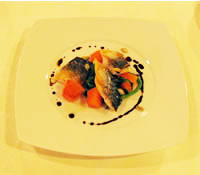 di sgombro con cime di rapa, zucca gialla e aceto balsamico ridotto