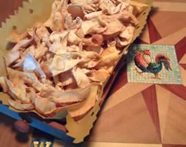 Intanto partiamo dalle dosi, che vi abbiamo fin'ora dato per quattro persone, ma in questo caso è difficile, visto che con un uovo forse quattro persone rimarrebbero insoddisfatte, mentre con due uova di cenci ne vengono così tanti che solo quattro bei mangianti riuscirebbero a finirli.