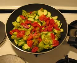 a fuoco lento. Dopo 10-15 minuti, quando i peperoni saranno morbidi,