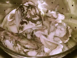 le seppie e pulitele, togliendo le interiora, gli occhi, il becco e