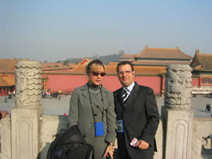 Nella immagine: Vincenzo Conticello con Ines Aronadio, dirigente dell'Istituto per il Commercio Estero, nella Città Proibita (Beijing)
