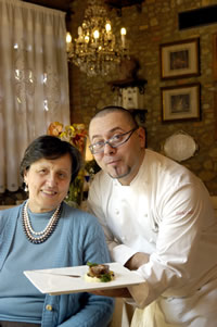 il resto del servizio in sala.Proprietaria del complesso, Mariva Benucci. Nome singolare, energia da vendere e schiettezza nei rapporti con il prossimo. Una grande passione che lha portata a realizzare un piccolo-grande sogno, con molta fatica e notevole impegno economico. Quello che si vede è tutto opera sua, dagli arredi del locale alla scelta dei vini, parlando con lei si capisce che sintende di aziende e produzioni vitivinicole come di pezzi dantiquariato, stoffe, lampadari, eccetera eccetera. Se arrivate fuori orario e senza preavviso, la potete trovare nei campi a raccogliere quello che di meglio la stagione riesce ad offrire. Proprio così; dal campo alla cucina in un crescendo di sapore e piacere, sapendo di poter suggerire ad ospiti e clienti, veri e propri assaggi di genuinità. Tiene lontano dalla sia frenetica attività di ristoratrice il marito, che si occupa di tuttaltro, ma vorrebbe che il figlio fosse per il Colombaio levoluzione naturale di tutte le sue fatiche. Che