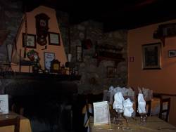 cariche di oggetti e quadri, il grande camino e i tavoli dal tovagliato