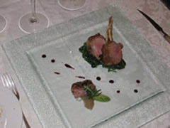 d'agnello con germogli di spinaci, puré di scalogno e riduzione