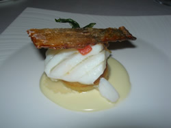 (dolce) con raviolini di pomodoro confit e aneto (più acuti).