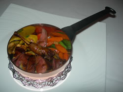 in casseruola ai sentori di caffè con piccole verdure il petto