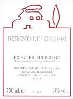 Bolgheri Rosso Greppi Cupi 2002 - Rosa Gasser (sangiovese/canaiolo/cabernet sauvignon) Naso aereo, floreale, su veste che si concede molte trasparenze. Bocca che risente di una certa mancanza di nerbo acido, dispiegandosi leggera e piacevole, senza affondare. La polpa invero non è quella delle vendemmie migliori. Bolgheri Rosso Superiore Rubino dei Greppi 2001 - Rosa Gasser (sangiovese/cabernet sauvignon/merlot)