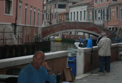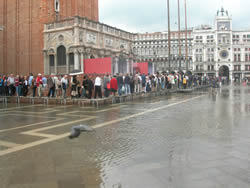 anche un accenno di acqua alta che mette in fila indiana i turisti sulle